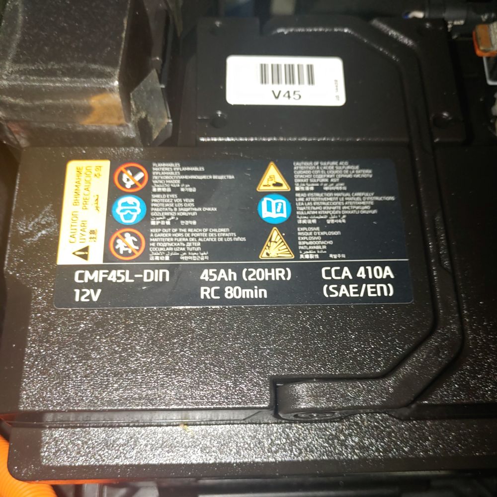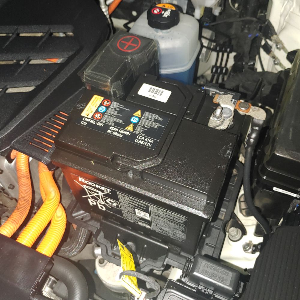 보닛을 열어보니 로켓 CMF45L이라는 모델의 배터리가 들어있었고 검색해 보니 이게 니로EV가 출고될 때 장착되어 있는 배터리라는 걸 알게 되었습니다. 전 주인은 5년 동안 배터리를 교체하지 않고 사용한 듯합니다. 앞서 이야기했듯이 너무 작은 용량의 배터리라서 상시전원으로 블랙박스를 물리고 사용하면 자주 방전된다는 평이 있었습니다. 그래서 기존배터리용량인 45ah보다 50ah, 60ah등 보다 큰 배터리를 사용해서 마음의 안정을 찾는 사람들이 많았습니다.