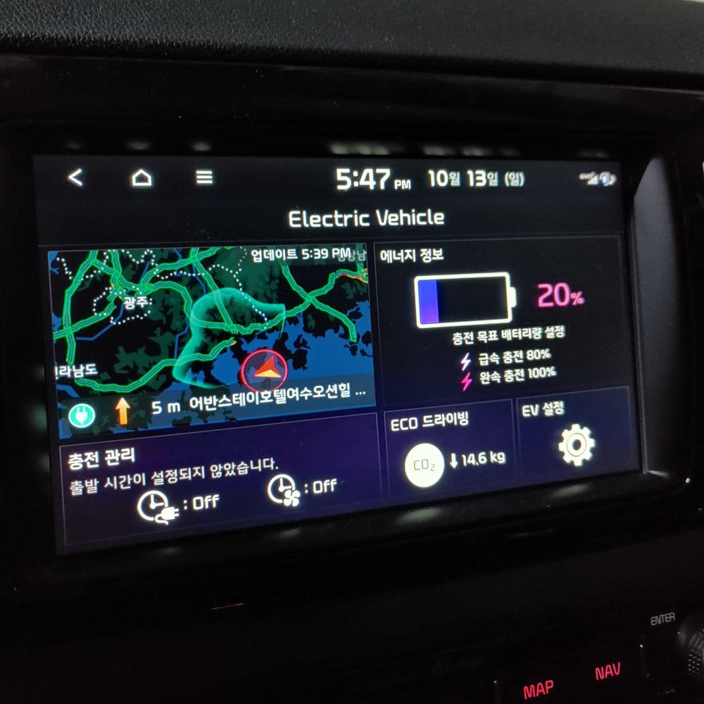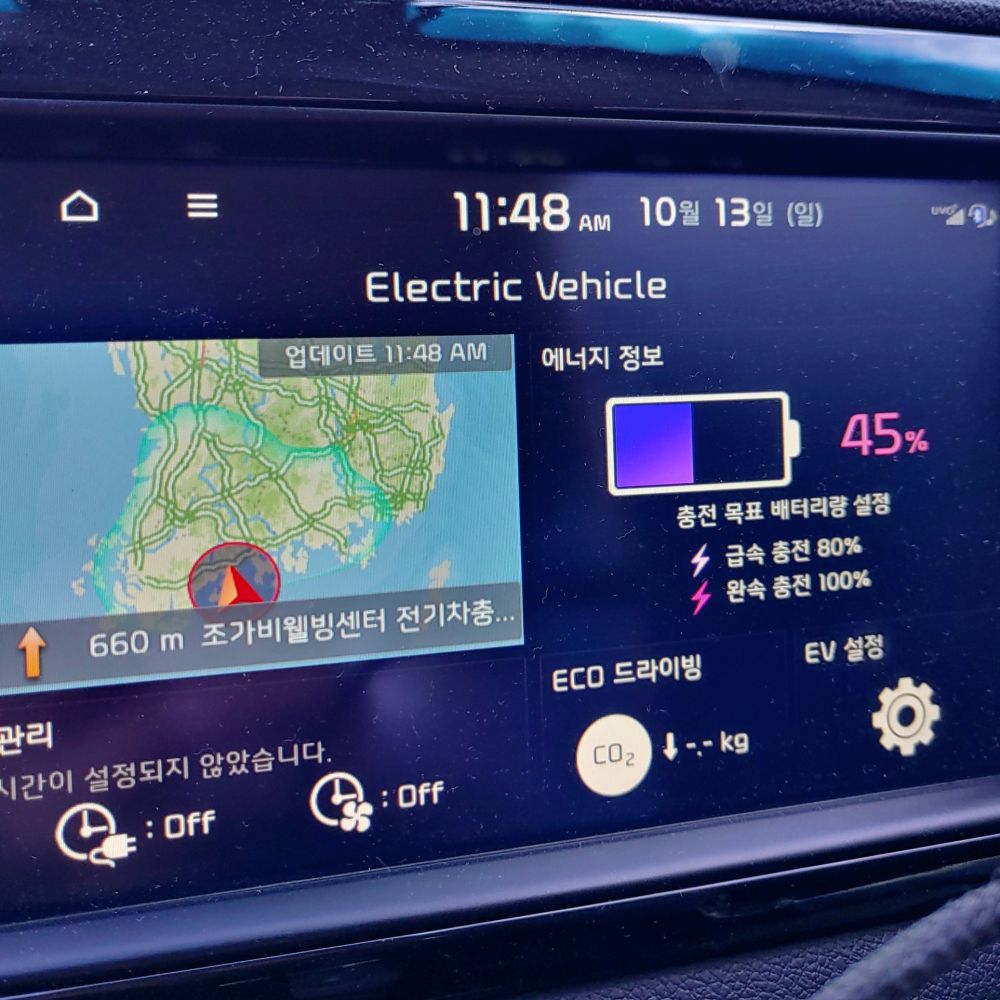 5년이 된 전기차지만 가을이라서 그런지 주행거리에 대해서 부족한 부분은 없습니다. 제 기준으로 주행거리가 400km만 나와진다면 장거리시에도 힘든 일은 없습니다. 우리나라는 400km면 어지간하면 다 갈 수 있습니다. 거기다 장거리는 운전하게 되면 휴게소를 한번쯤은 쉬게 되고 그때 충전을 하면 됩니다. 그렇다면 49kWh의 배터리를 가지고 있고 공식 주행거리가 300km인 캐스퍼 일렉트릭도 장거리 주행이 힘들지 않아 보입니다.