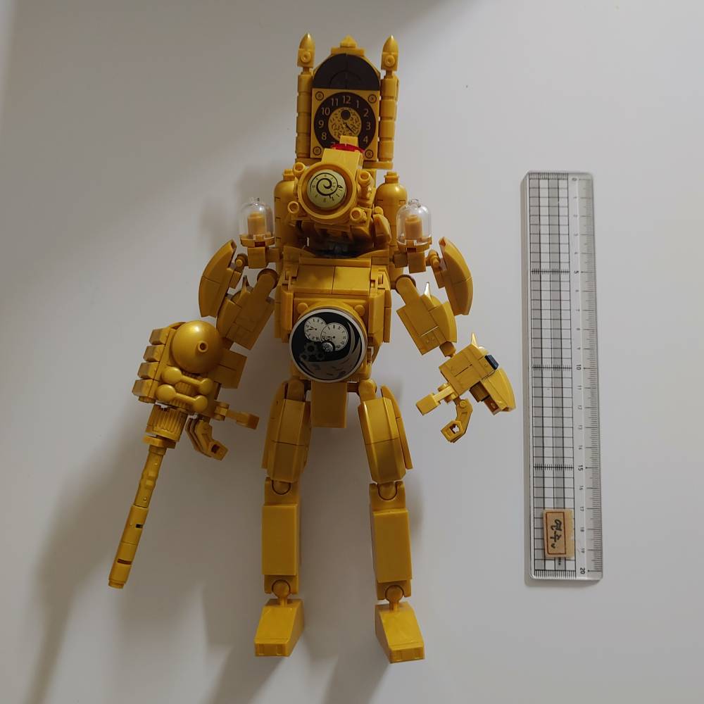 이번에 구매한 건 스키비디 토일렛 멀티버스에서 등장하는 타이탄 클락맨이라는 로봇입니다. 전신이 황금색으로 등에는 커다란 시계를 메고 있다는 특징이 있습니다. 이 짬레고 타이탄 클락맨은 알리에서 구매했는데 400개가 넘는 블록들로 이루어져 있고 한 장짜리 설명서가 들어있습니다.