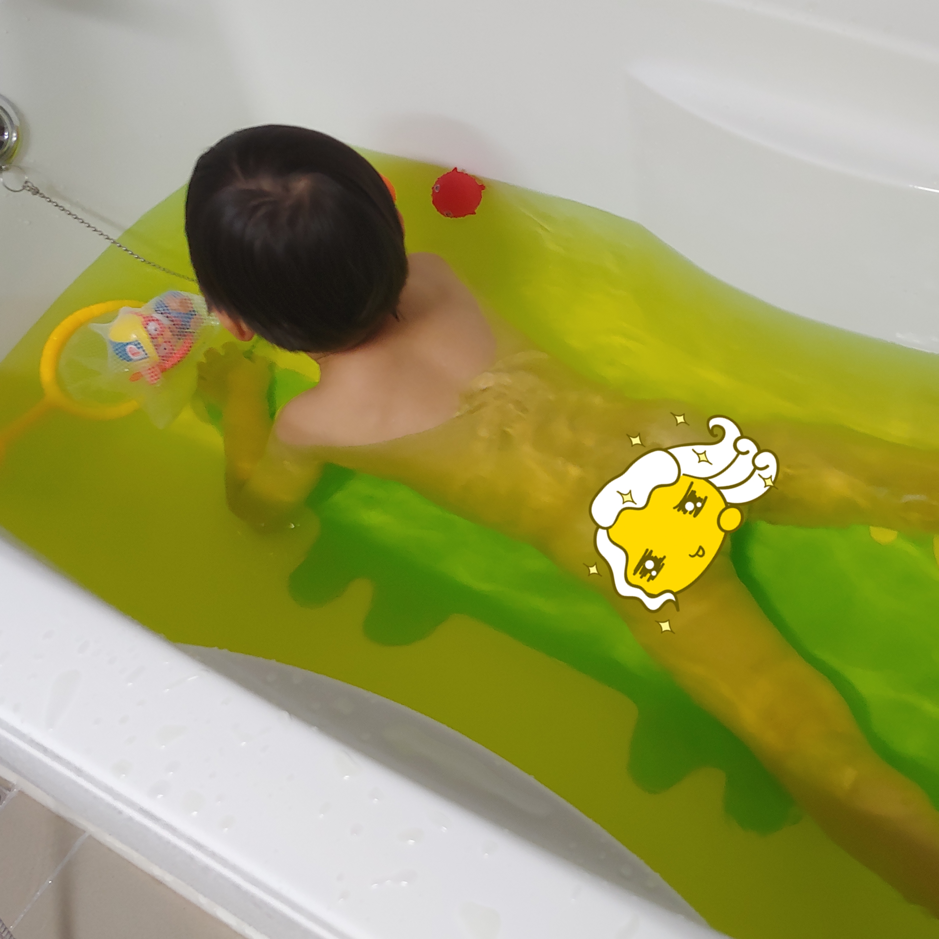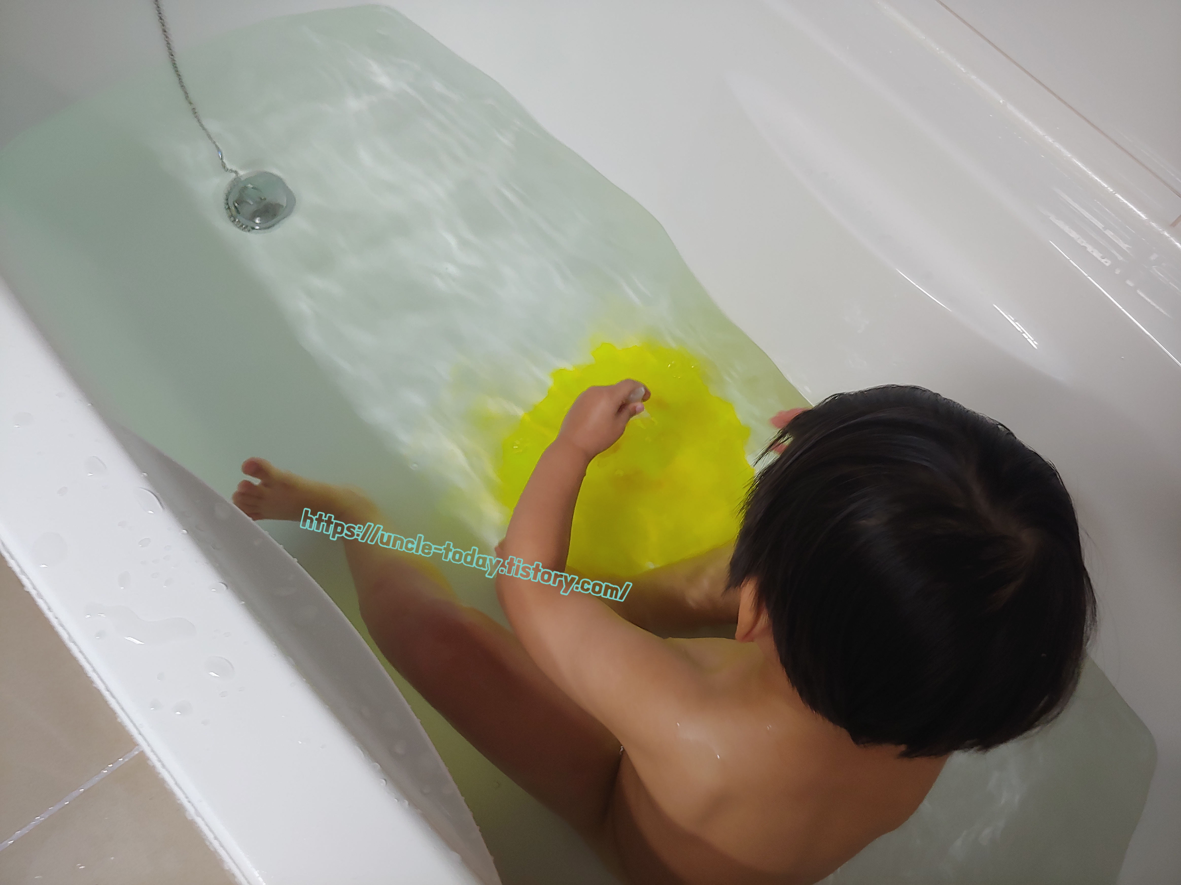 유노하나 뒷면에는 10분 정도 있으라고 하는데 우리 아이는 이렇게 1시간 정도 들어가서 놀아요. 저도 샤워하고 욕조안에 들어가서 좀 놀아주고 하면 1시간이 좀 안되는데 안 나가려고 해서 1시간으로 정해놓고 그 사이에 놀아주고 있어요. 나올 때는 머리만 감겨주고 나와서 그냥 몸에 물만 닦아내고 옷 입혀서 내보냅니다. 그 사이에 엄마도 좀 쉴 수 있겠지 하고 그냥 여유있게 목욕합니다. ㅎㅎ