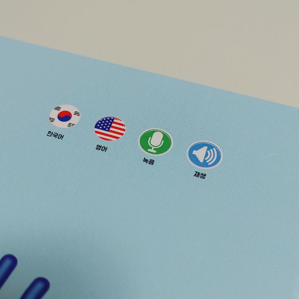 각 페이지마다 있는 한국어와 영어 그림을 세이펜으로 누르면 원하는 언어로 동화책을 들을 수 있습니다. 영어로 듣는 건 쉽지 않은 일이라고 생각되고 한글로 끈기있게 들어주길 기도합니다. ㅎㅎ 그래도 이 책이 자기 또래 아이들이 나오는 이야기이기도 하고 감정이 실려있는 성우분들의 목소리 덕분인지 세이펜을 잘 사용하는 모습을 보여줬습니다.