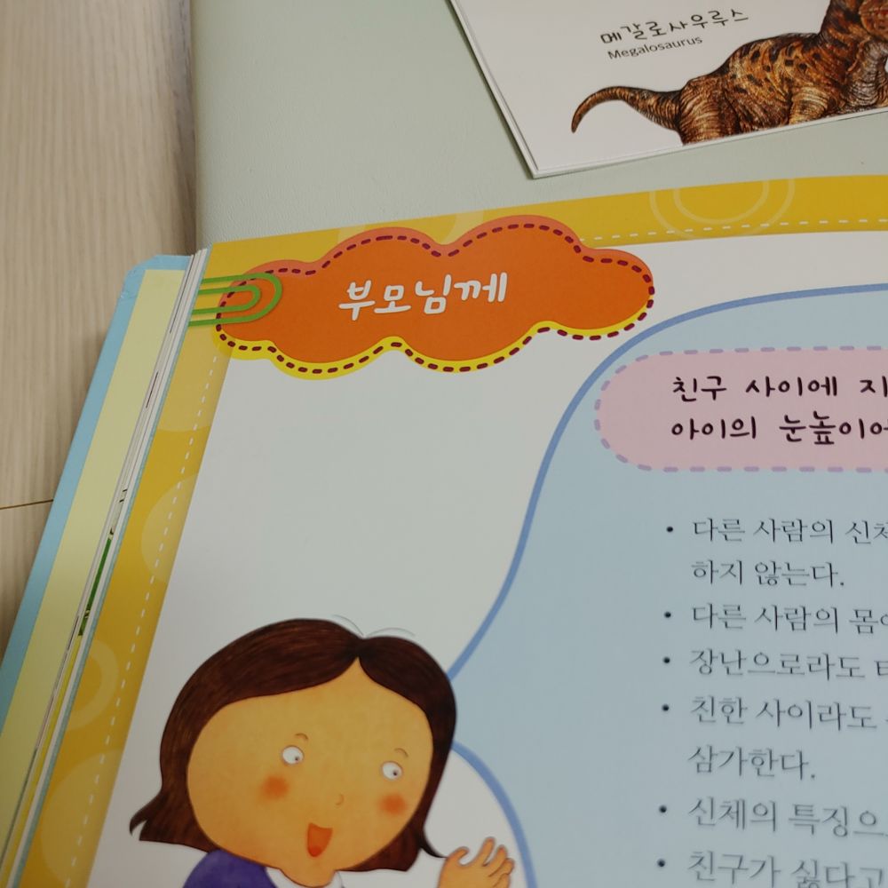 미묘한 부분에 대해서 알려주는 부분도 좋습니다. 사실 이 책을 구입하겠다고 했을 때 전 벌써 이런 책이 필요한가 했는데 제가 무지했다는 점을 인식할 수 있었습니다. 매일 1권씩 읽어주고 있는데 아직까지는 잘 보고 있습니다. 이제까지 읽었던 책하고 내용이 조금 달라서 재미없어하면 어쩌나 했는데 다행이라고 생각합니다.