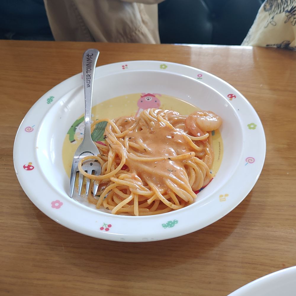 아이 먹으라고 로제파스타를 따로 덜어줬습니다. 역시 잘 먹네요. 토마토소스가 들어가 있는데 파스타를 잘 먹는 편입니다.