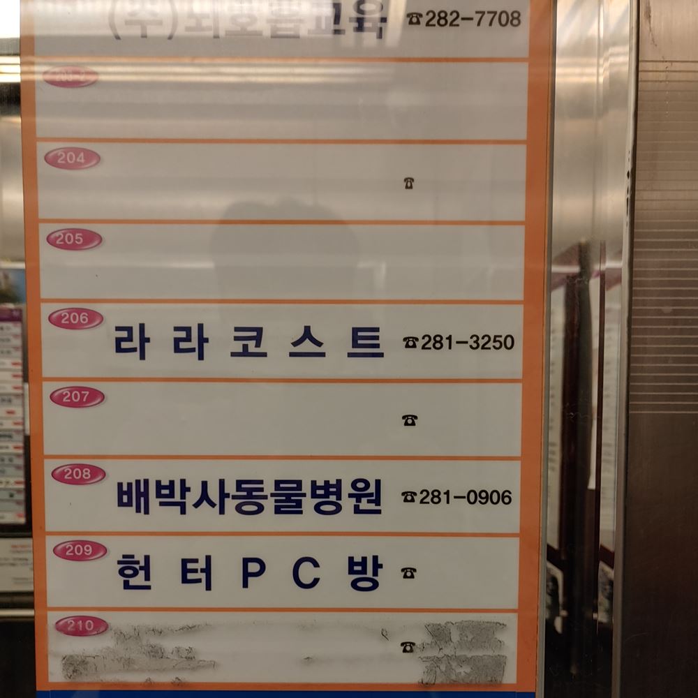 건물 2층에 있는데 지하주차장에 주차를 하고 엘레베이터를 타고 올라갔습니다.