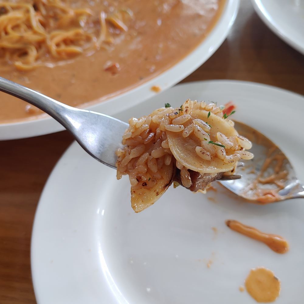 빠네를 좋아하는 전 열심히 빵을 뜯어서 소스에 적셔서 먹었습니다. 크림파스타로 만들어진 빠네와는 달리 덜 느끼해서 먹어도 부담이 없습니다.