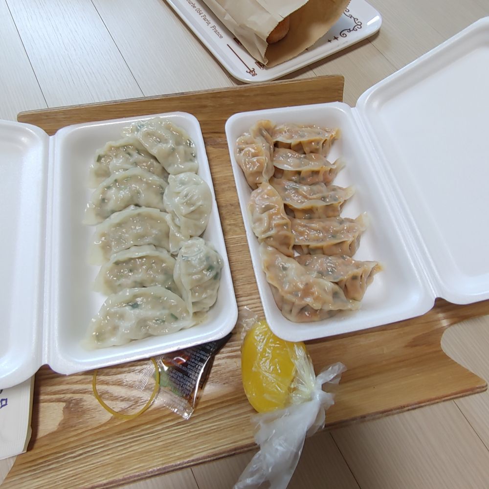 이번에는 자동차로 왔기 때문에 만두가 서로 달라붙지 않았겠지 생각했는데 착각이었네요. 이번에도 만두피가 달라붙어서 조금씩 찢어졌습니다. 아쉬운 점입니다. 만두는 전에도 먹어봤지만 씹히는 맛이 좋았습니다.