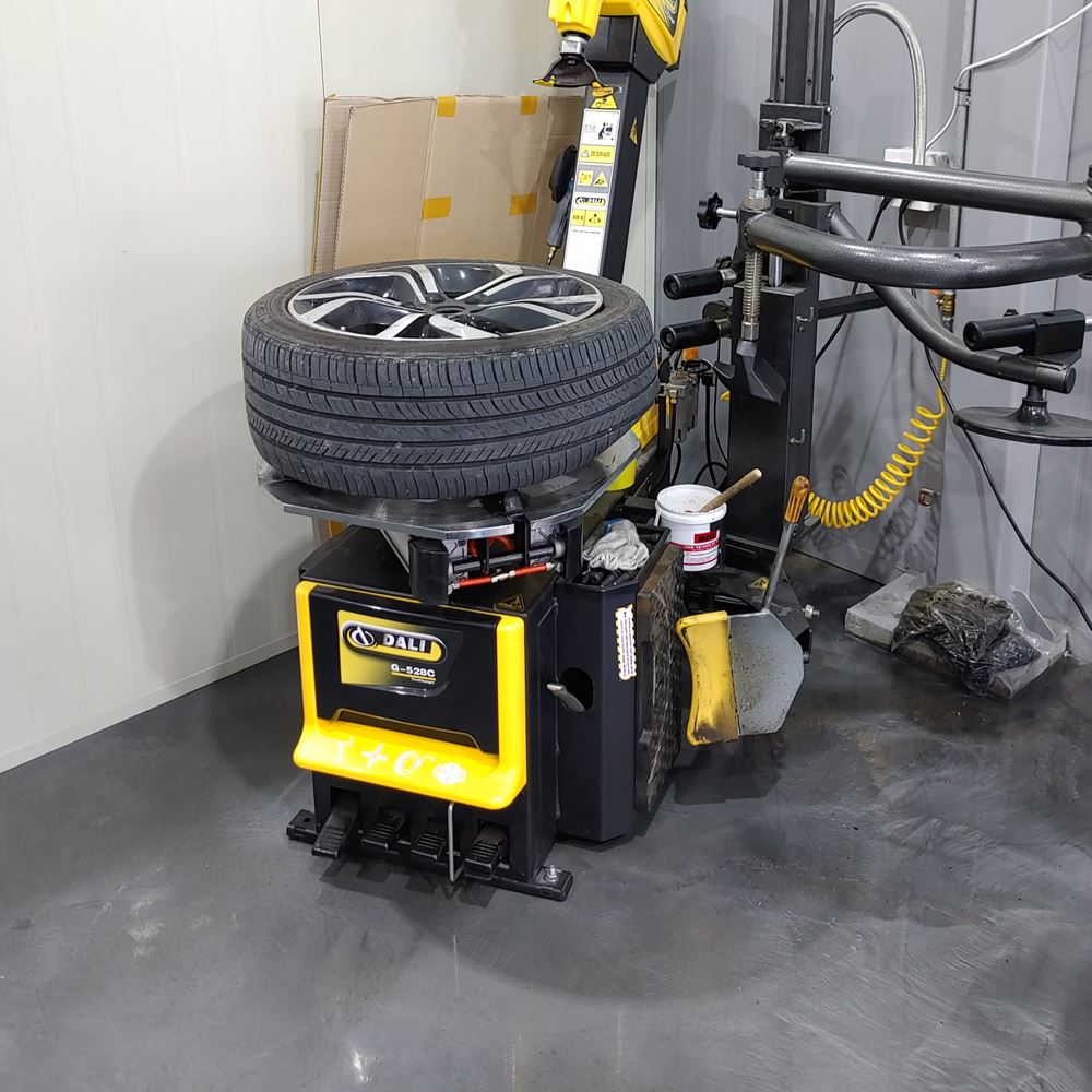 장비를 이용해서 휠에서 헛 타이어를 분리시키고 새 타이어를 휠에 넣는 작업을 하게 됩니다. 타이어를 교체할 때 보통은 사무실에서 TV를 보거나 스마트폰을 하고 있는데 이 날은 아이가 타이어 교체하는 걸 보고 싶다고 해서 저도 계속 보고 있었네요.