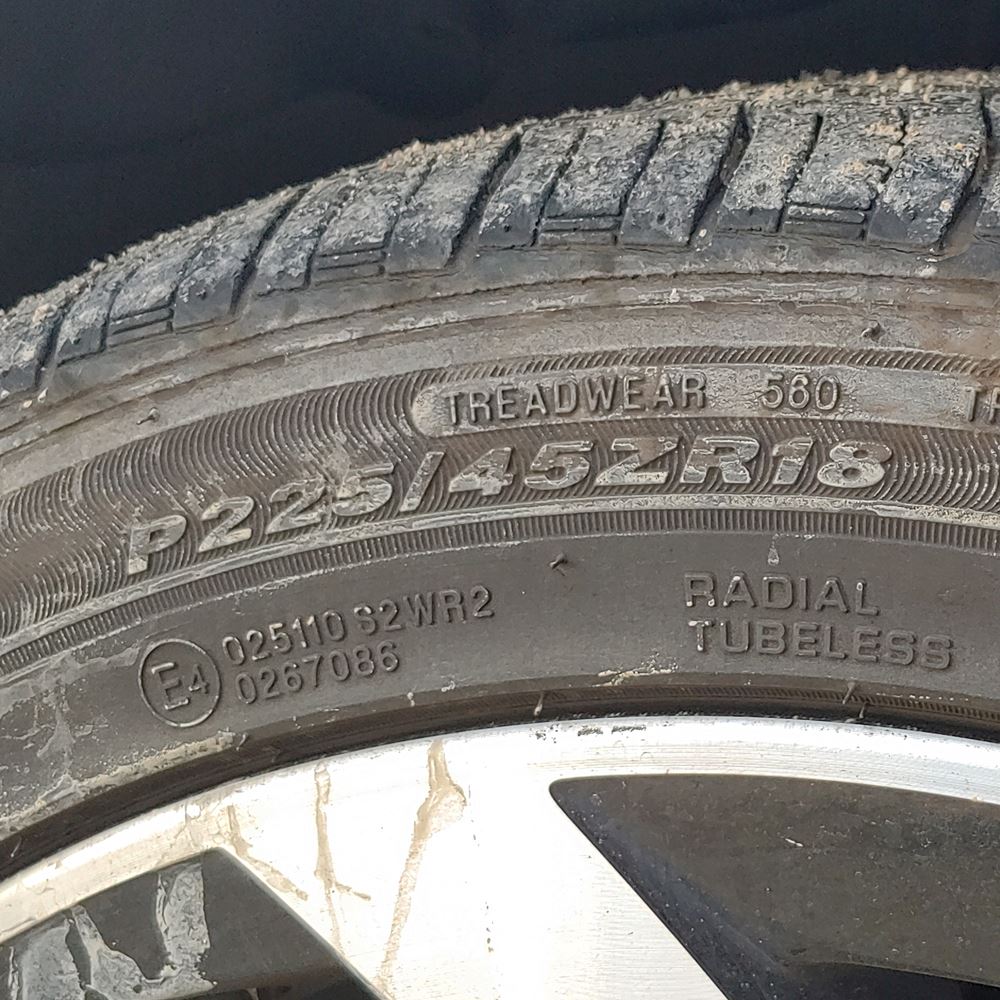 타이어를 갈기 위해서는 자기 차에 맞는 타이어를 골라야 되는데 차문을 열면 옆에 타이어 사양을 확인하셔도 되고 아니면 지금 장착되어 있는 타이어의 사양을 확인하고 같은 걸로 교체하면 됩니다. 제 차는 타이어에 P225/45ZR/18 이라고 적혀있습니다.